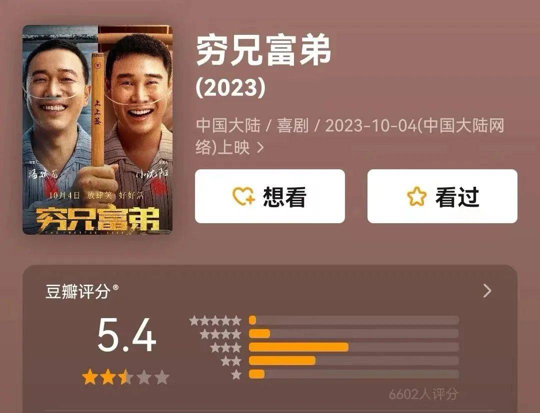 近日,小沈阳的新电影《穷兄富弟》正在热映,热度确实还不错,估计大家都是冲着小沈阳来的,但显然小沈阳没交出一个让观众满意的答卷,这部电影最终只得到了5.4分。