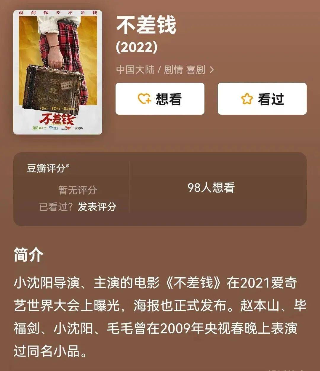 或许是2018年的多部烂片让小沈阳元气大伤,他在2019到2021三年间只是频繁在综艺上露面刷脸熟,即使偶尔有作品也都没有评分,完全没有证明自己的机会。