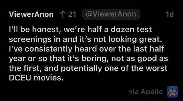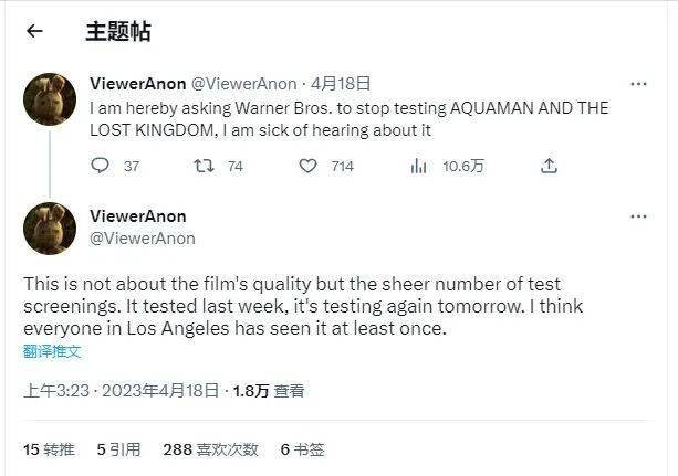 到了4月,更有业内人员公开发推,恳求华纳停止对《海王2》的继续试映,因为频率已经高到令人崩溃。