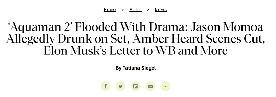 《海王2》大戏连连:杰森·莫玛被指片场酗酒,艾梅柏·希尔德戏份被删,埃隆·马斯克向华纳发出威胁信