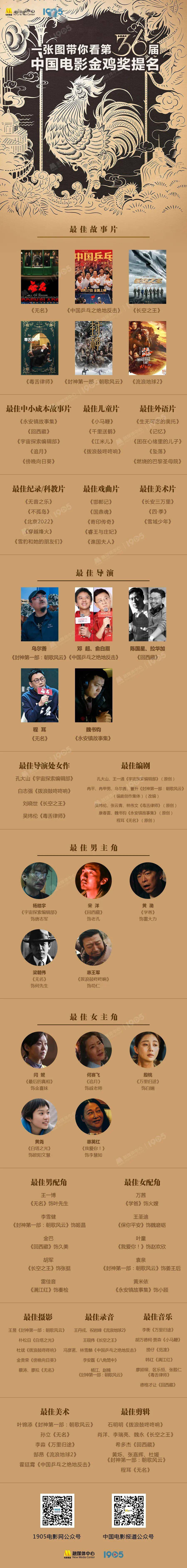 话不多说,直接看本届金鸡奖的最终提名名单。