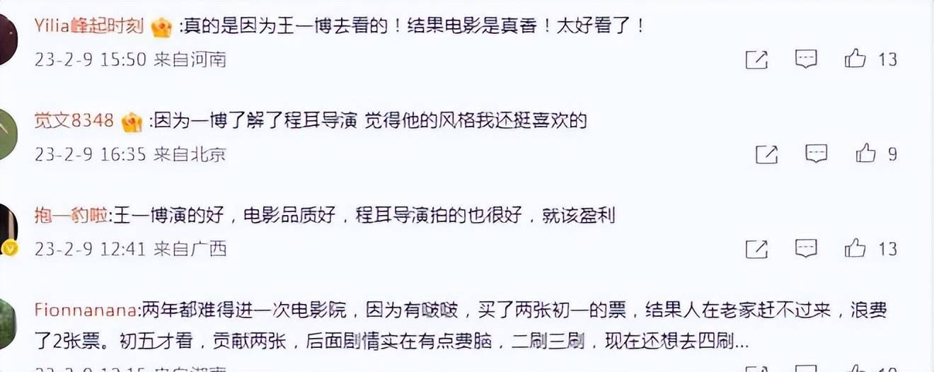 其次从留言也能看得出来,大部分人就是冲着王一博去的,大部分2刷以上的朋友,都是冲着王一博去的