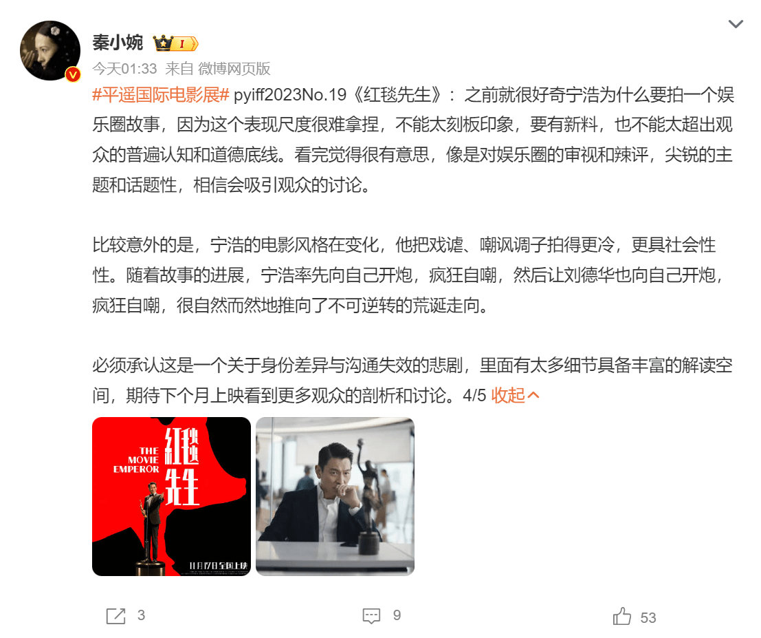宁浩旧瓶装新酒,虽然是较有新意的故事,但依然是他擅长的喜剧风格,因此被cue到的明星们并非商业互吹,更像是真心喜欢,看过的观众反响也不错。