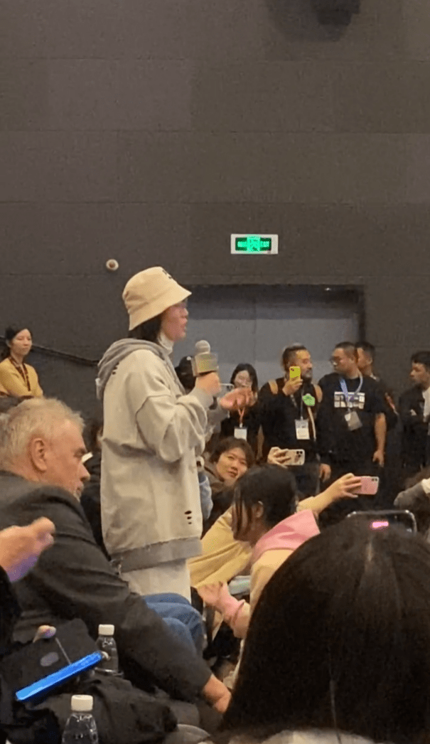 李雪琴则亮出她的段子手本色“我来之前上网看了很多观众的评论,评论说‘宁导疯了’,这个世界就没有他在乎的人了,他现在就是平等的撞死所有人。我其实准备了一下,如果我发现我在电影里也被嘲讽了,我一会儿就出来解释解释,但看过之后我发现以我的资历还没有到足以被嘲讽的地步。今天来了很多电影行业的朋友们,大家处在工作的不同阶段,在这里祝愿所有的朋友们,尤其是刚才打投资人那段鼓掌最响的朋友们,祝愿各位在自己的行业里早日成为有资格被骂的那批人,但不成为被骂的人。”