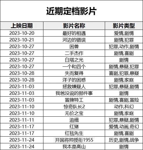 如《最好的相遇》《困兽》《洋子的困惑》《追缉》《开国将帅授衔1955》《我本是高山》等一批扎进冷档期的中小体量项目,单独来看每一部影片的市场吸引力都很有限。但如果同期项目能够带热大盘,这些影片也会有一定概率可以跟在热门影片背后喝一口汤——或许这已经是这类影片最理想的市场走向。