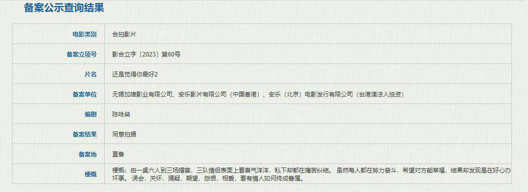 原标题:《还是觉得你最好2》立项 看有情人如何终成眷属
