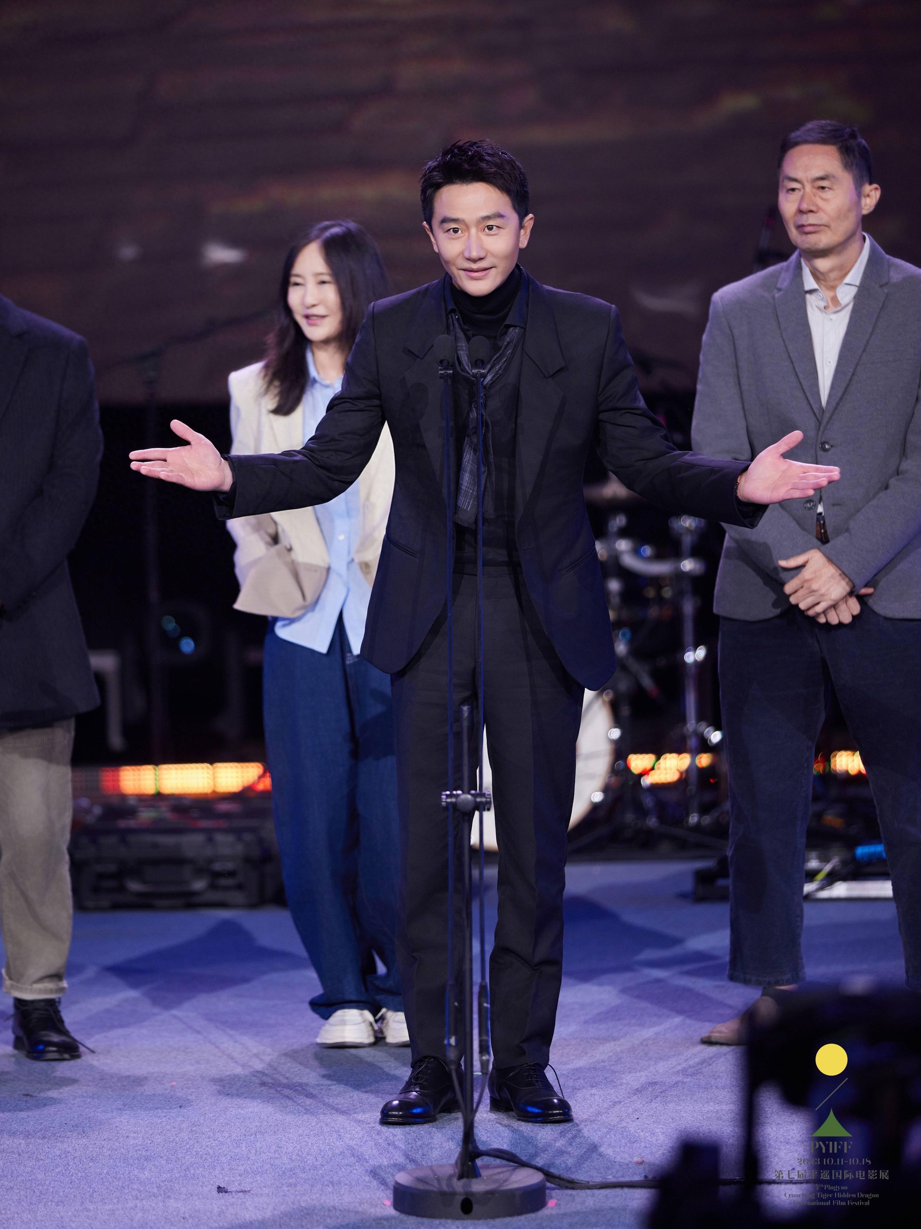 今年,平遥国际电影展隆重授予电影导演、编剧、监制黄建新“卧虎藏龙东西方交流贡献荣誉”。入围本届电影展藏龙单元的所有在场青年导演作为颁奖嘉宾,为黄建新导演授予荣誉。开幕片《河边的错误》导演魏书钧、主演朱一龙登台,与观众分享电影创作背后的故事。朱一龙表示,平遥国际电影展一直是给青年电影人展现自己的平台,很高兴来到这里。