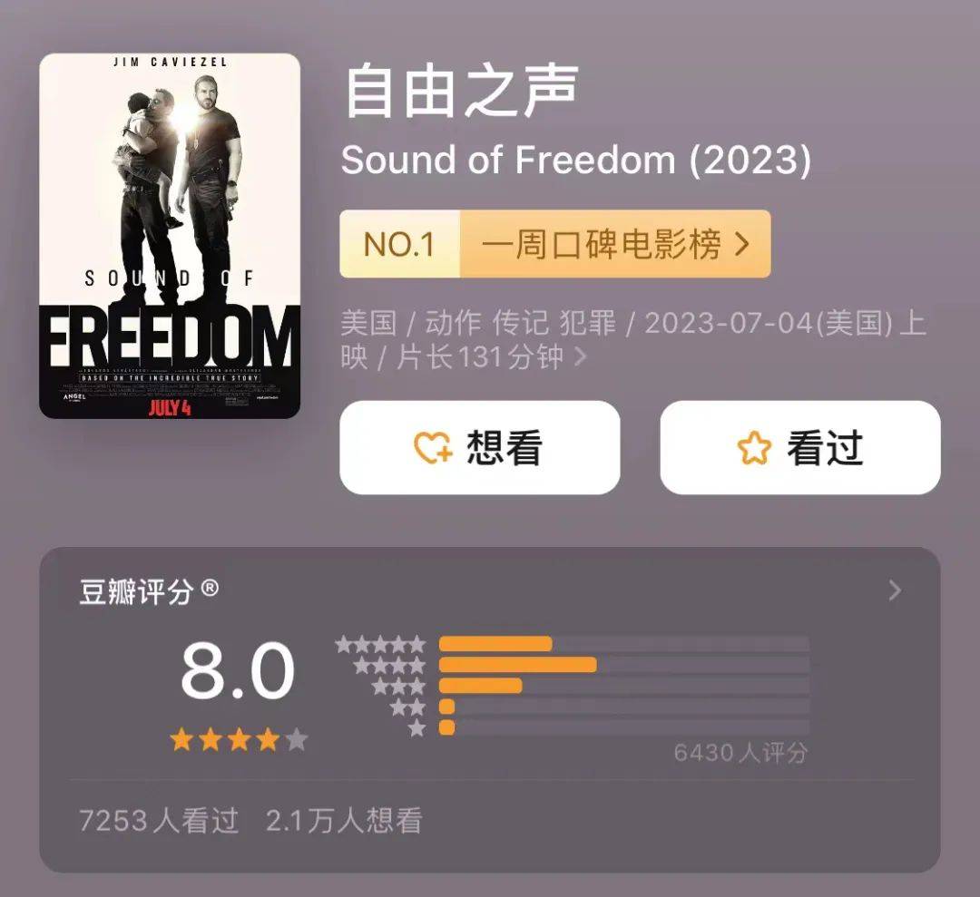有趣的是,虽然信仰电影在美国之外一向少有关注度,但《自由之声》的热风太盛,也很早吹到了中文网络。