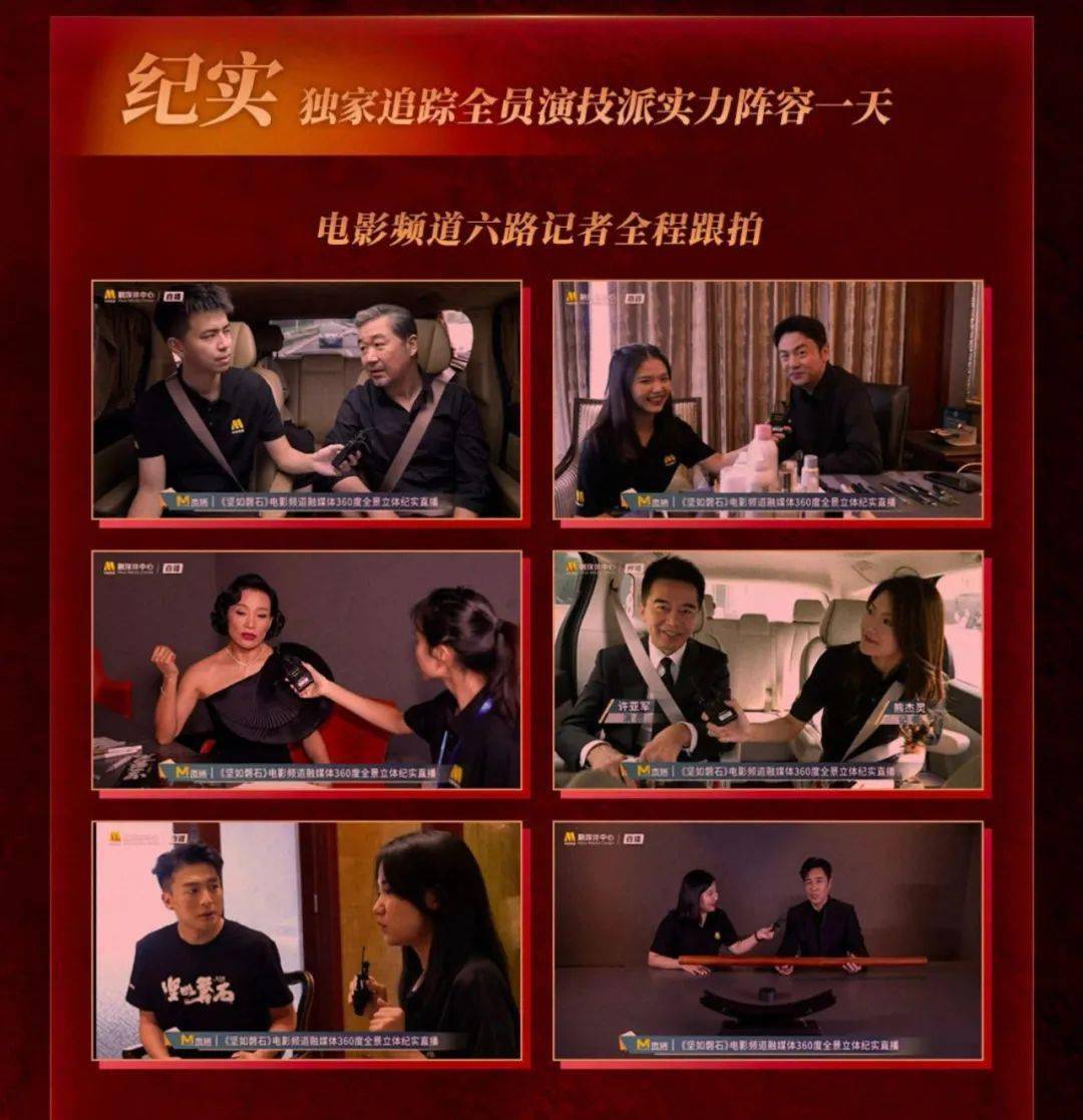 为保障宣发内容的时效性与不同寻常的独家视角,电影频道直播团队全天全程跟拍电影主创团队,短时间内就可产出新鲜海量的一手物料。《坚如磐石》首映日,“六公主”团队派出7路镜头跟拍7名主创,只为呈现全景呈现台前幕后;《前任4:英年早婚》首映直播长达11个小时,与主创一同见证预售开启。