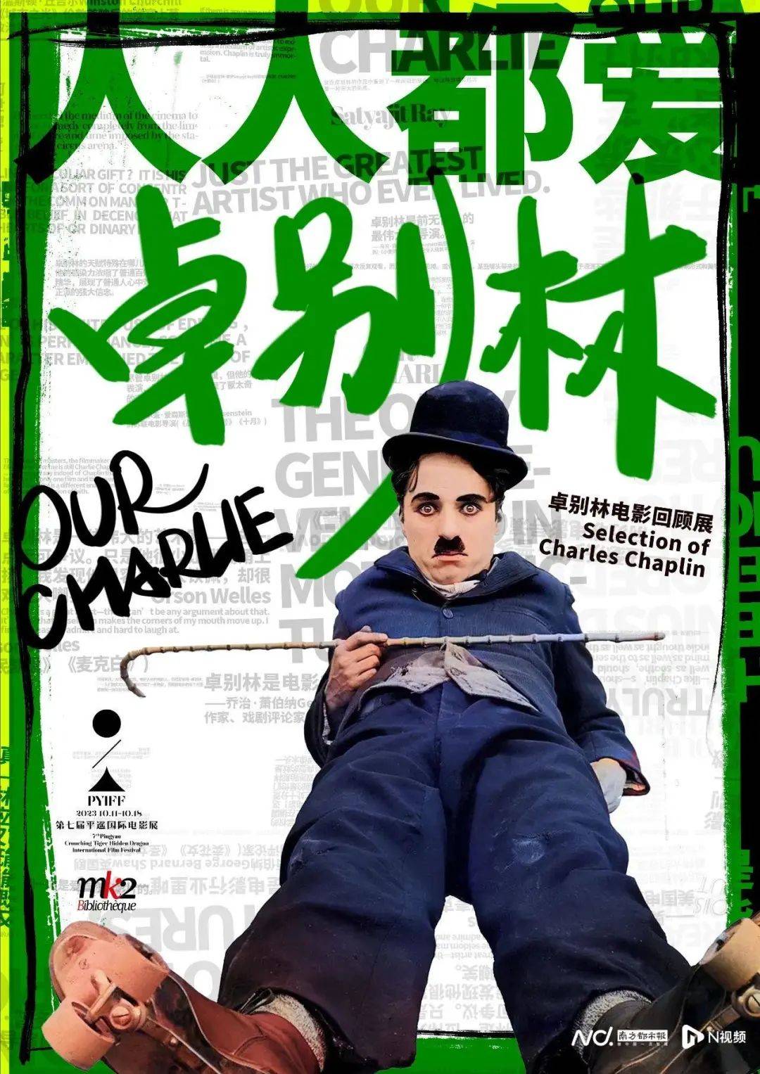 本届平遥国际电影展与法国MK2电影公司合作,特别策划了“人人都爱卓别林”回顾展,展映20世纪20至50年代的11部卓别林经典作品,分别是《寻子遇仙记》《朝圣者》《巴黎一妇人》《马戏团》《城市之光》《摩登时代》《大独裁者》《淘金记》《凡尔杜先生》《舞台春秋》和《纽约之王》。