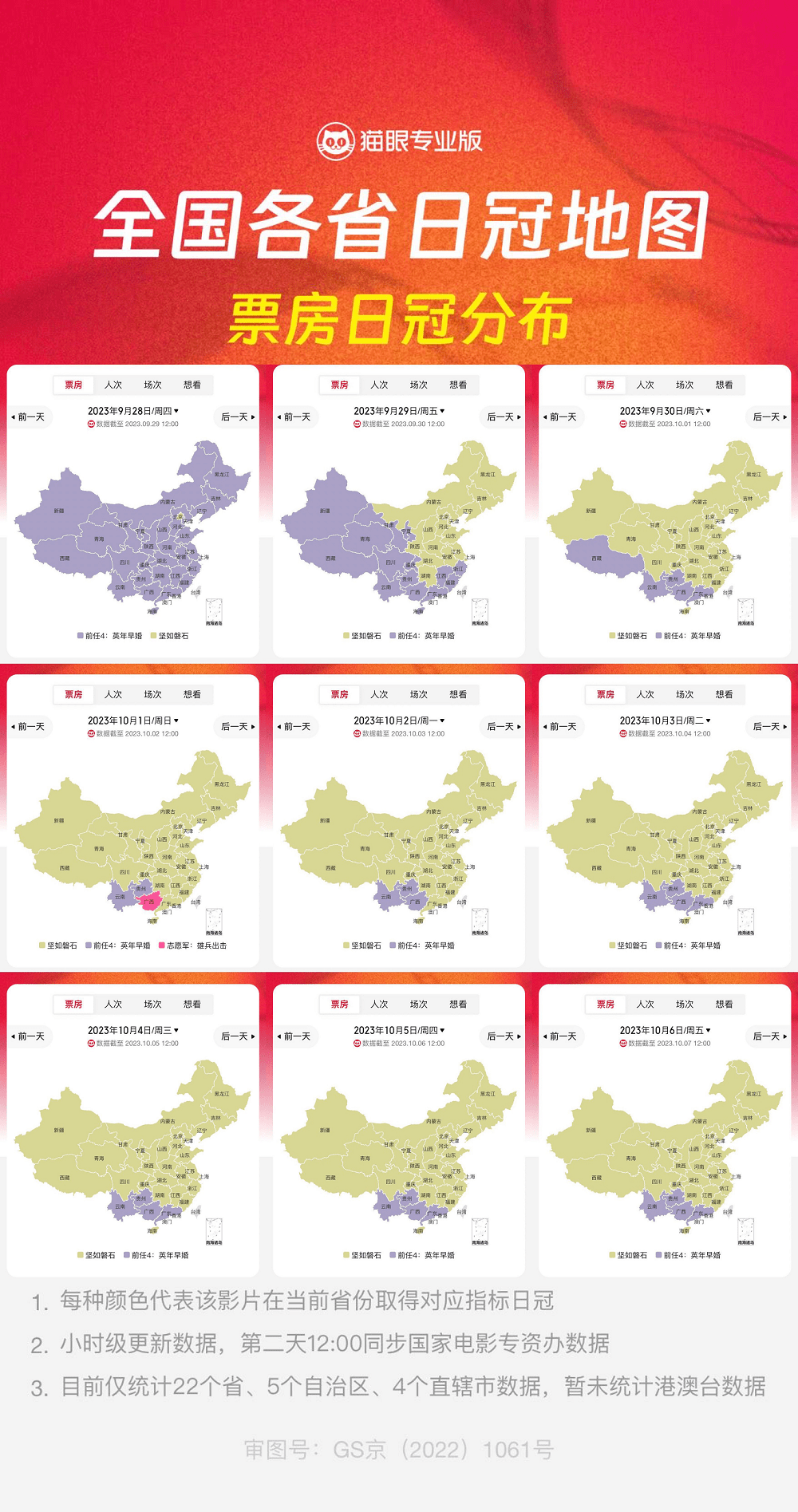 像猫眼专业版如今的日冠地图已经可以达到一时一更,以小时为单位跟进项目数据区域变化,每日战报的数据汇总也更加系统、准确。以数据层面推动从业者提升决策效率,帮助宣发团队在短时间内获取到最新的市场反馈,在国庆档这种短周期内,高时效性数据已成为高效宣发的主要推手。