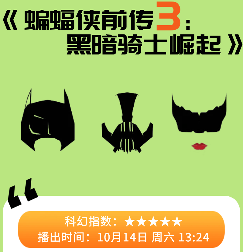 这部万众瞩目的超级英雄大片,是克里斯托弗·诺兰导演《蝙蝠侠》系列有如史诗般宏大的最终篇章。片中,一个戴着面具名叫“毒药”的大反派出现,蝙蝠侠终于迎来了一个势均力敌的竞争对手。如克里斯托弗·诺兰导演计划的那样,他决定讲述的是一个不会再得到任何延伸的故事,为充满传奇色彩的蝙蝠侠创造一个有始有终的闭合环路。