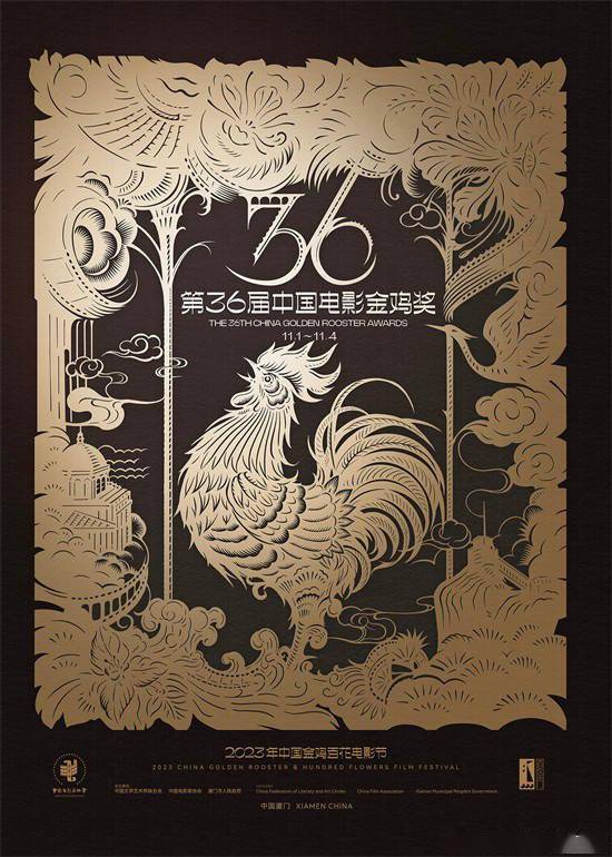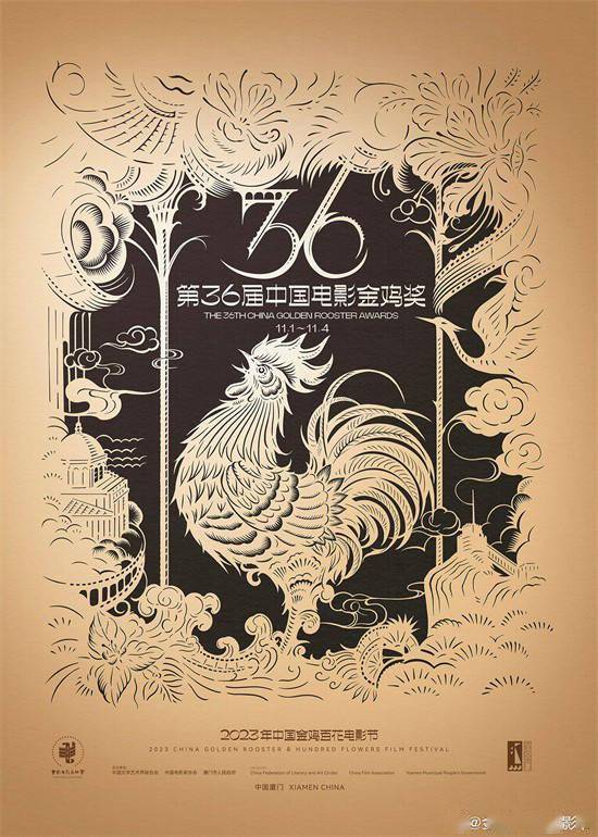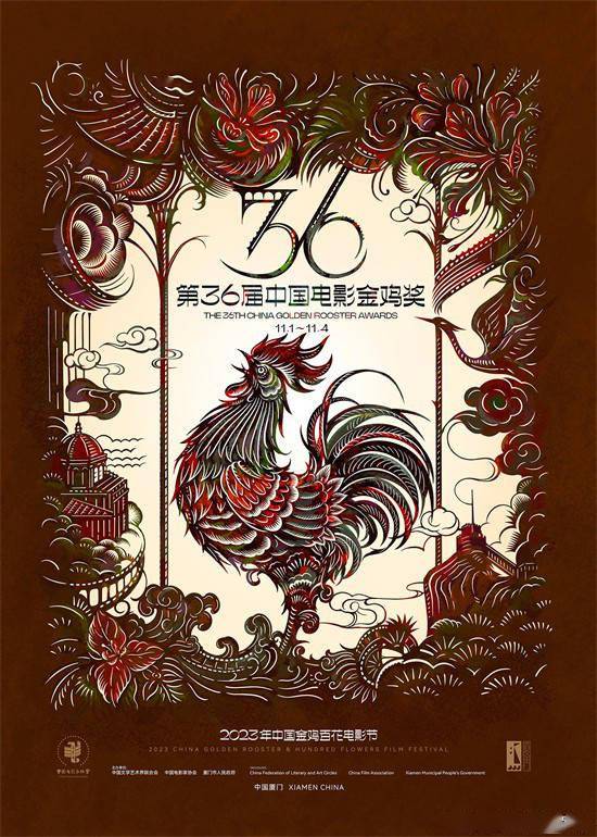 1905电影网讯10月9日,2023年中国金鸡百花电影节暨第36届中国电影金鸡奖公布主视觉海报,海报采用中国非遗技艺“剪纸”,来致敬中国电影。