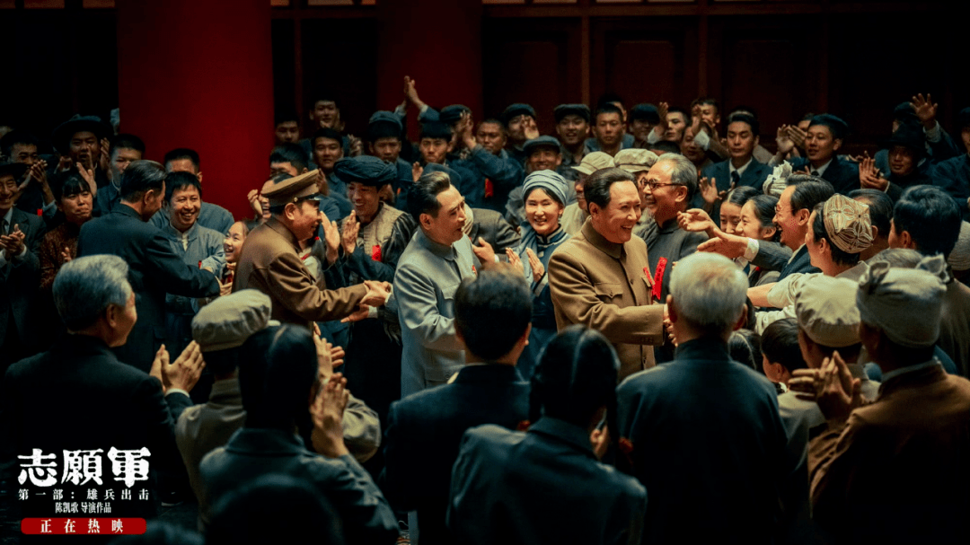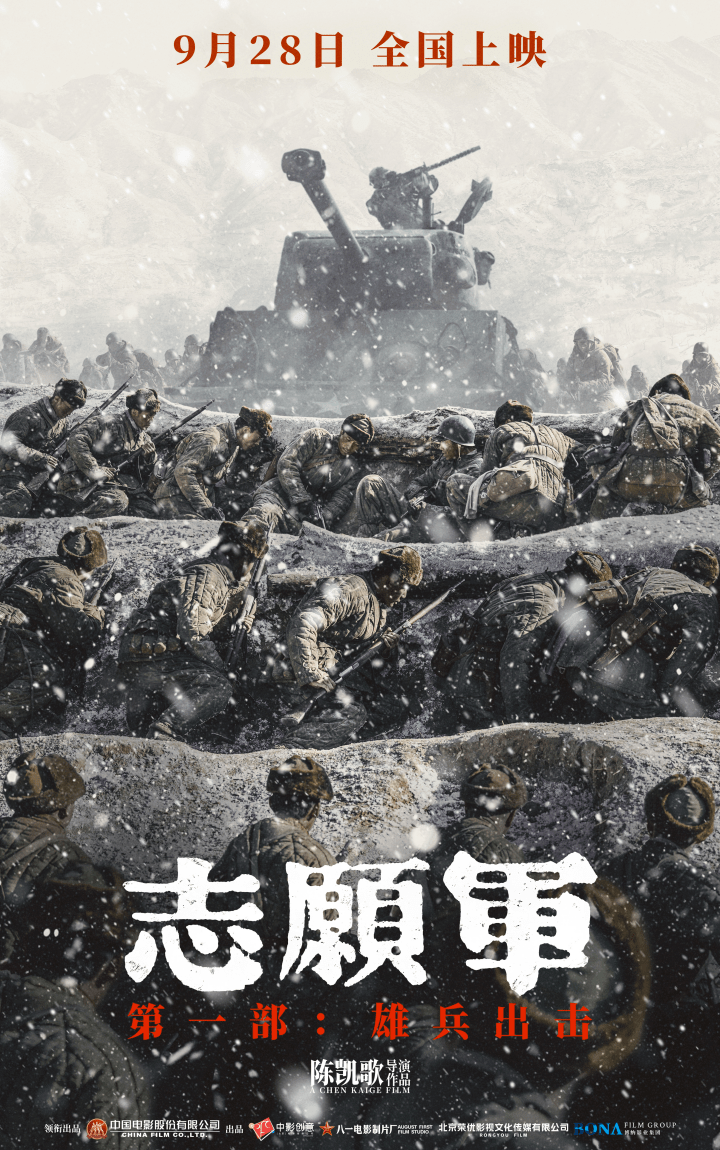 《志愿军》的出品方中影作为国有影视公司,或许是当下最能从宏观角度把握主旋律题材、在思想上达到政治高度,在制作上实现史诗级呈现的电影公司。《志愿军》从立项之初就定下全景式的基调,将个人命运与时代背景结合,从全局高度解释了抗美援朝战争的缘起,也展现了全国上下对于战争性质与意义的深刻理解。在首映礼上,中影董事长傅若清就评价道:“《志愿军》实际上是三部曲的史诗性影片,这部影片的呈现会有文献意义。”