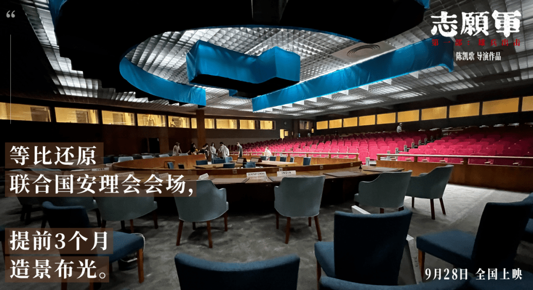 在服化道的细节上,《志愿军》更是精益求精。据造型指导陈同勋透露,主要角色都严格依据历史人物肖像照,对演员进行物理性改造。比如张颂文的发型、服装都与其扮演的原型人物伍修权完全一致。为了力求真实,电影还根据历史资料等比例还原了当年联合国会议现场,参会人员所穿的西装都有700多套。