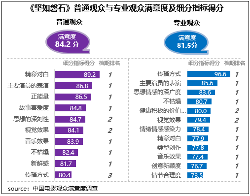 ▍《坚如磐石》满意度领衔,演员表演和思想深度获好评