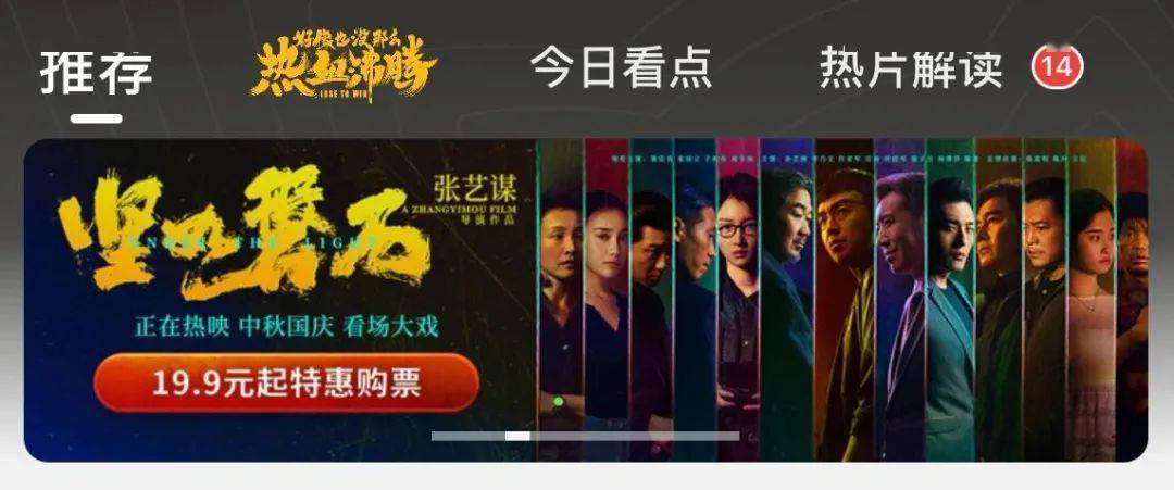 值得一提的是2023年国庆档期间,市场消失已久的票补策略重出江湖。在猫眼、淘票票两大购票APP首页,均能看见多部国庆档新片19.9元特惠购票广告。