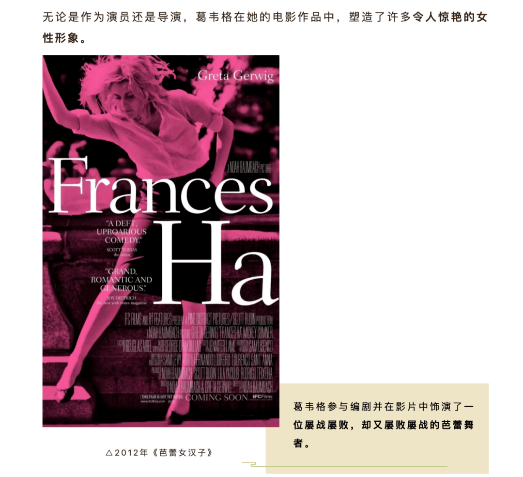 当年,身为演员的格蕾塔·葛韦格凭借出演黑白片《芭蕾女汉子》在《佳片有约》获得了许多中国观众的喜爱。