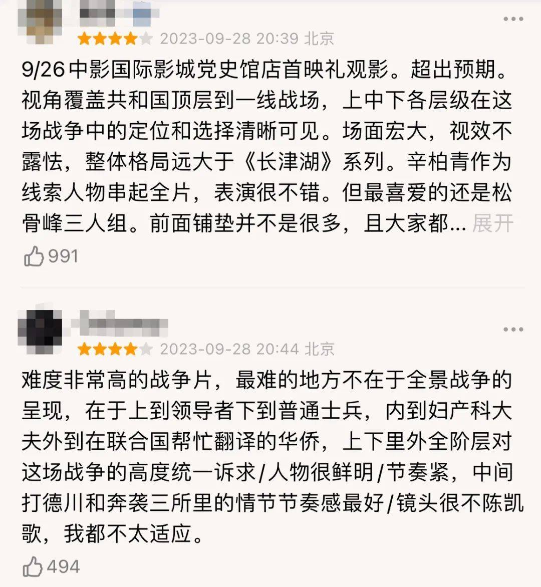 带着这种预期,观众层面对口碑的质疑始终伴随着,比如陈凯歌导演是文戏大师,但能否拍好战争戏?比如经历了这么多同题材之后,能否拍出新意?