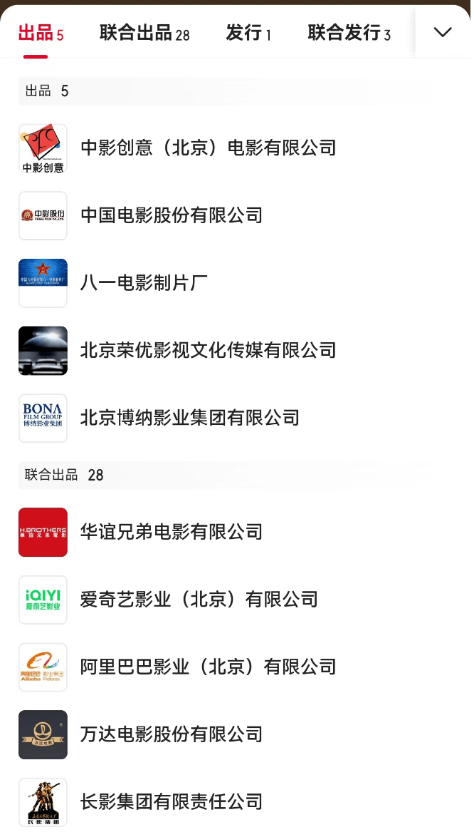 而28家联合出品方,阵容实在太强大了,从华谊兄弟、万达、英皇等老牌电影制作公司,到阿里、爱奇艺、猫眼等新兴互联网公司,再到联瑞这样的宣发公司,占据了目前电影市场的半壁江山,这些公司都是有资本、有背景,以及在宣发领域能出上一份力,但在这场“高端局”上,联合出品的最后两位,却是两位演员成立的小公司,能登上联合出品的名单,意味着他们在当下的电影市场上有举足轻重的地位,可以和上面那20多家大公司平起平坐。