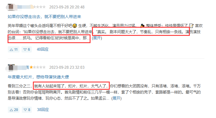 甚至有网友直言,自己在影院里看到三分之二,就听到有人大骂“烂片”,足见这部电影有多让人失望。