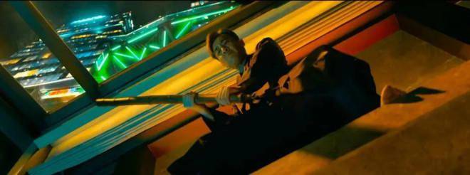 此外,这跟棒棒也是他的“武器”。片中有一场戏半夜黎志田被吵醒,其实是有人打探他在那个房间。当杀手持刀侵入的时候,黎志田就站在上方,抢先出手,而他手里的武器正是这跟棒棒。