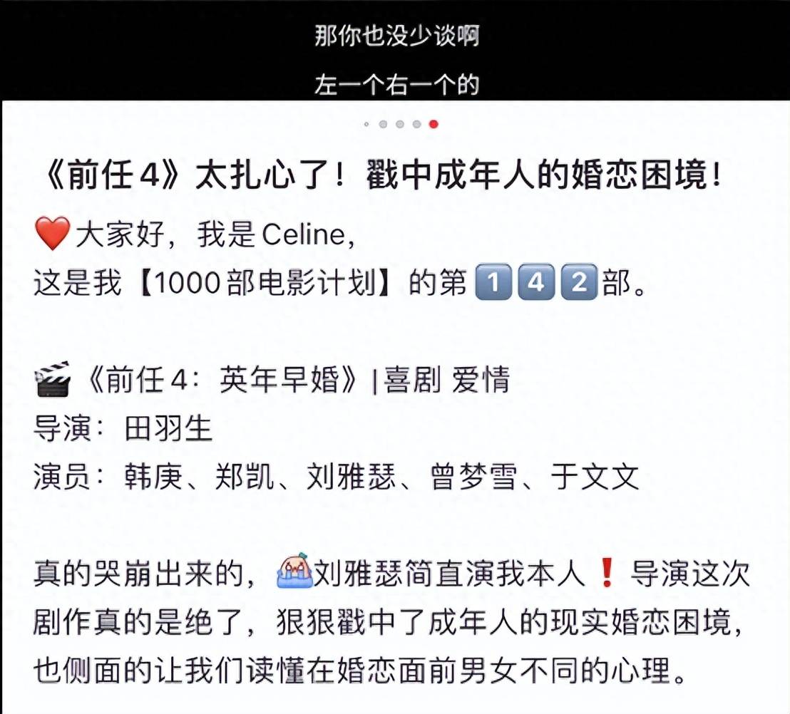 真开心和真感动的碰撞,让《前任4》特别“顶”,带给观众非常好的观影体验,离场后就会安利给身边的亲友,这是电影票房成功的基础。