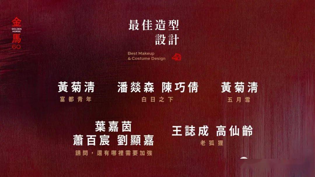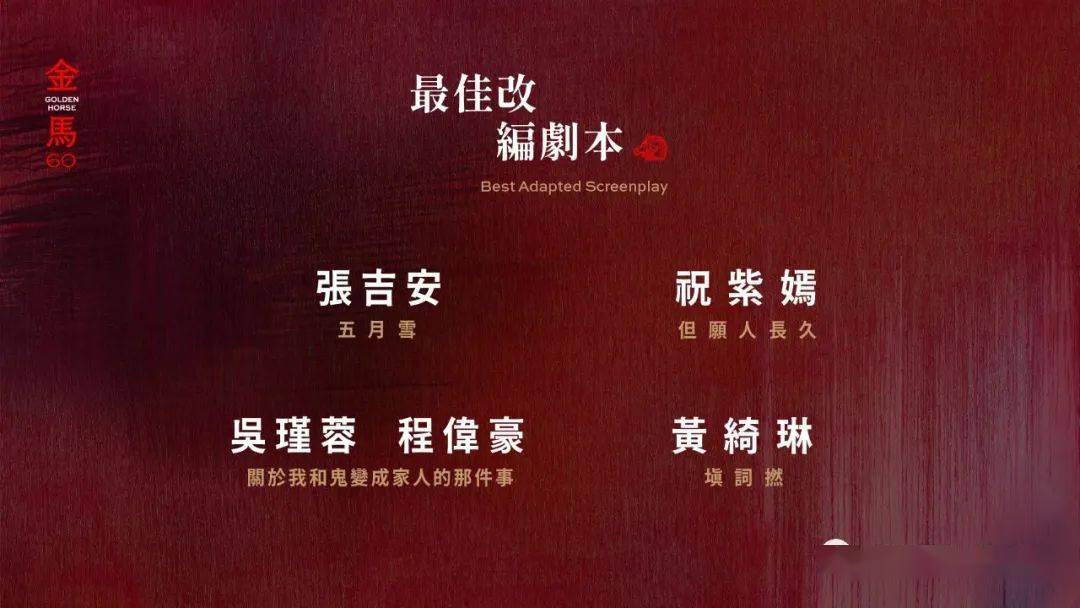 第60届金马奖今日(10/3)公布入围名单。今年报名影片共计552部(剧情片78部、动画片2部、纪录片58部、剧情短片280部、纪录短片76部、动画短片58部),由金马执委会执行长闻天祥与上届金马影帝黄秋生揭晓。