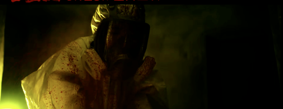 从黎进入捆着David的房间,画面中的黄光都打在他身上,他是事件的主导者,是观众的视觉中心。当他慢条斯理一件件脱掉领带、西服,穿上防护服、带上防毒面具后,观众的心也跟着他提到嗓子眼。