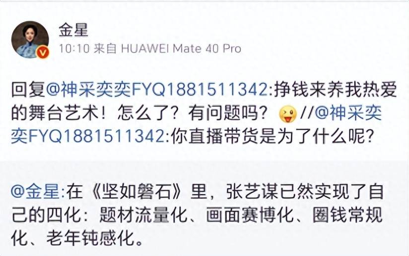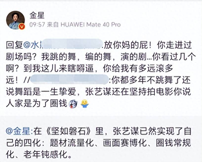 原标题:金星抨击张艺谋圈钱并“四化辣评”,被网友反怼,金星直接爆粗口