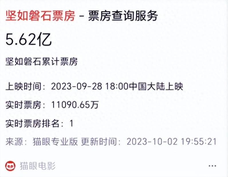 最近张艺谋新上映的电影《坚如磐石》在上映之后就一骑绝尘,将其他电影都甩到了后面,现在的票房更是飙升到了5.6亿,比第二名《前任4》整整多出了一亿。