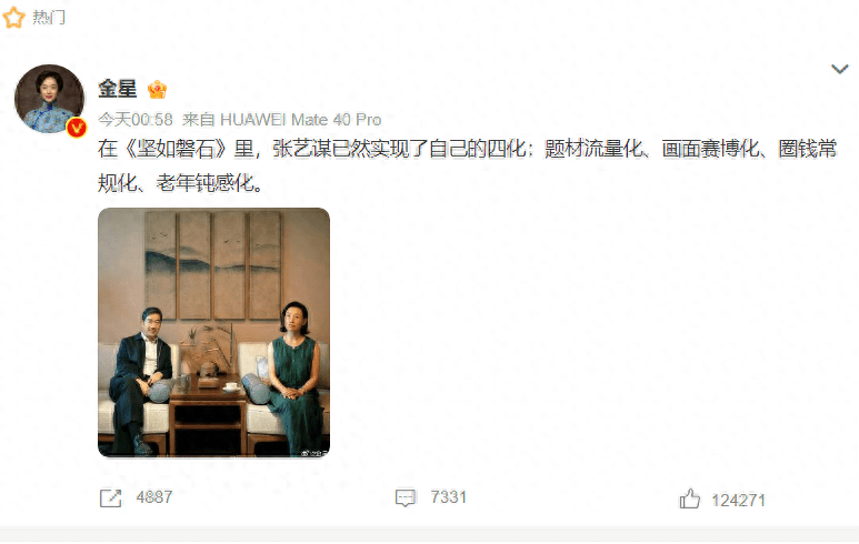 就在2号的凌晨,金星在个人社交平台上专门针对于张艺谋给出了四化辣评。