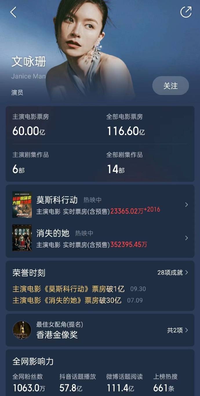 原标题:《莫斯科行动》正在热映中 助力文咏珊主演电影票房破60亿