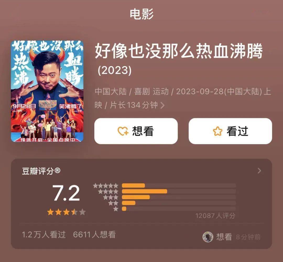 它的豆瓣评分倒是出人意料,与原版《篮球冠军》持平,均为7.2分——这个成绩已进本届国庆档影片的前三甲。