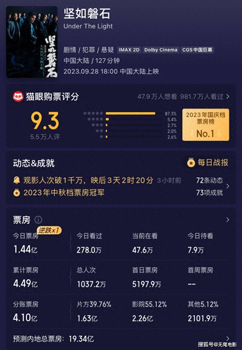 《坚如磐石》开始反超《前任4》,拿下国庆档单日票房冠军。