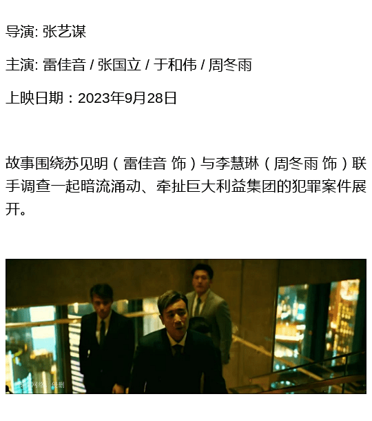 2023年中国电影暑期档总票房突破了200亿,取得了很好的成绩,中秋国庆档是否还能这么热闹呢?那就拭目以待吧,挑选了几部最近上映的电影,看看有没有感兴趣的。