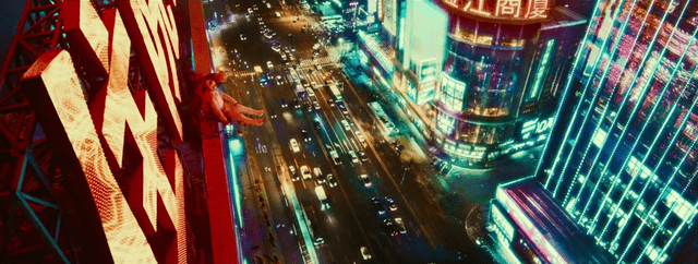 赛博朋克式的美感,在张艺谋的镜头下,不代表未来,却代表着深不可测的罪恶,和神鬼莫测的正邪斗争。