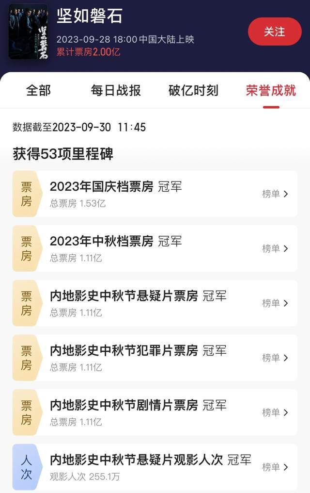 与此同时,它还刷新了包括国庆档实时票房冠军在内的53项里程碑纪录。
