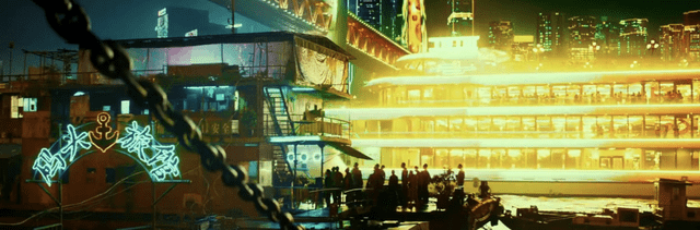 常在作品里注入个人美学烙印的张艺谋,这次将重庆夜色与城市光影的画面结合,让不少观众惊呼有一种“现实赛博朋克”的观感: