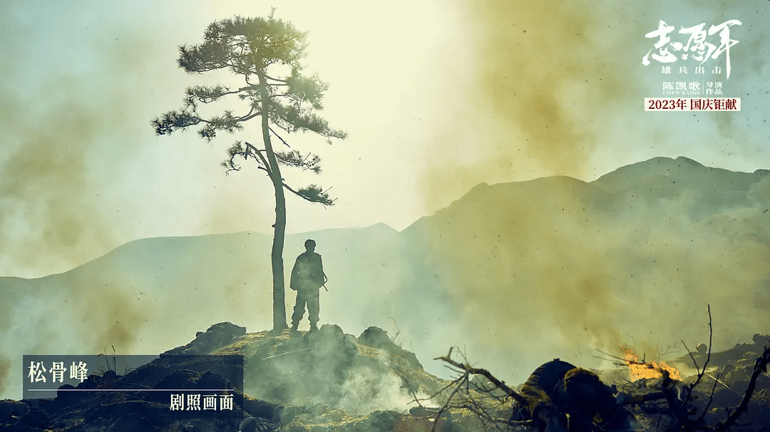 炮火中燃烧的麦穗,传递出战争与和平的强烈冲突;松骨峰上唯一活着的松树,象征着战士们孤勇的气节。这两样意象也是剧组最耗时的布景,前者花了几个月种植,后者不远万里将松树移植到拍摄地,非常符合陈凯歌对实拍的执念。