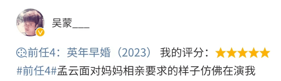 纵观整部《前任4》,从单身被催婚、相亲被嫌弃、婚前冷静期,可以说涵盖了感情生活的每一步。