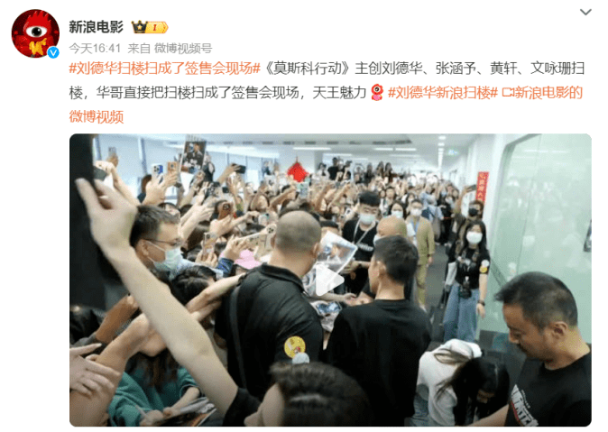 9月24日,《坚如磐石》官方微博大胆预告“叔圈集合”,次日剧组出现在北五环外的中关村附近,雷佳音、于和伟、孙艺洲、许亚军四位主演来了一场别开生面的新浪扫楼。今天下午,《莫斯科主创》刘德华、张涵予、黄轩、文咏珊四位主演也一齐扫楼,带来多个热搜话题。
