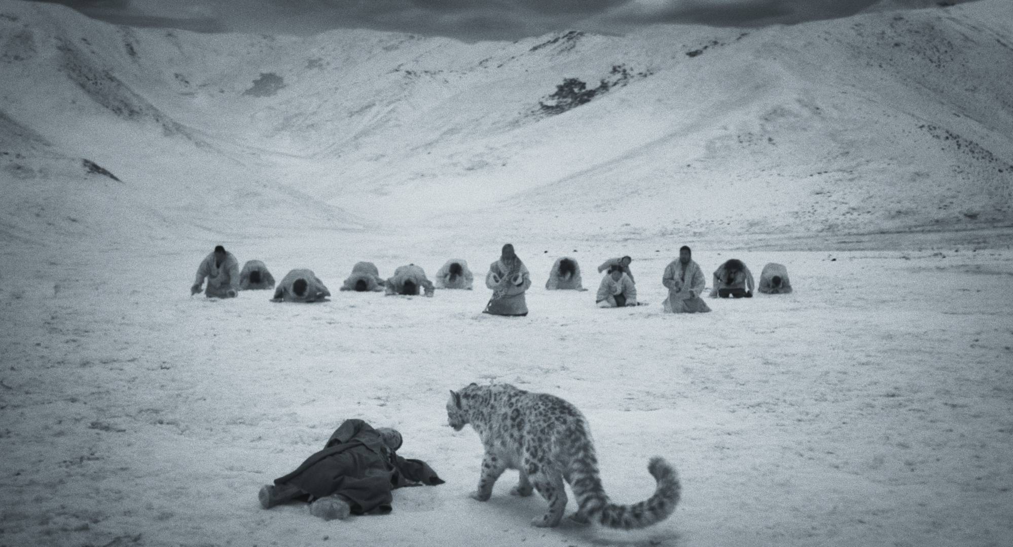 在万玛才旦导演的藏地电影宇宙中,动物一直是传达其哲思的重要意象和表达灵媒。这一次雪豹成为核心叙事主体,使得影片更为着重探讨了高原上“天地人兽”之间相互依存的关系。影片首次大规模使用高工业水准的CG技术,打造了中国乃至全球首个高清雪豹的数字影像,在壮美圣洁的藏区自然圣境下,雪豹与人之间充满精神性的超现实互动,也呈现生命的平等尊重、和谐相处与慈悲灵性。