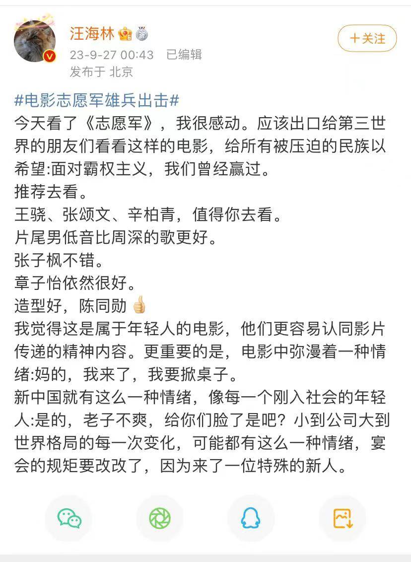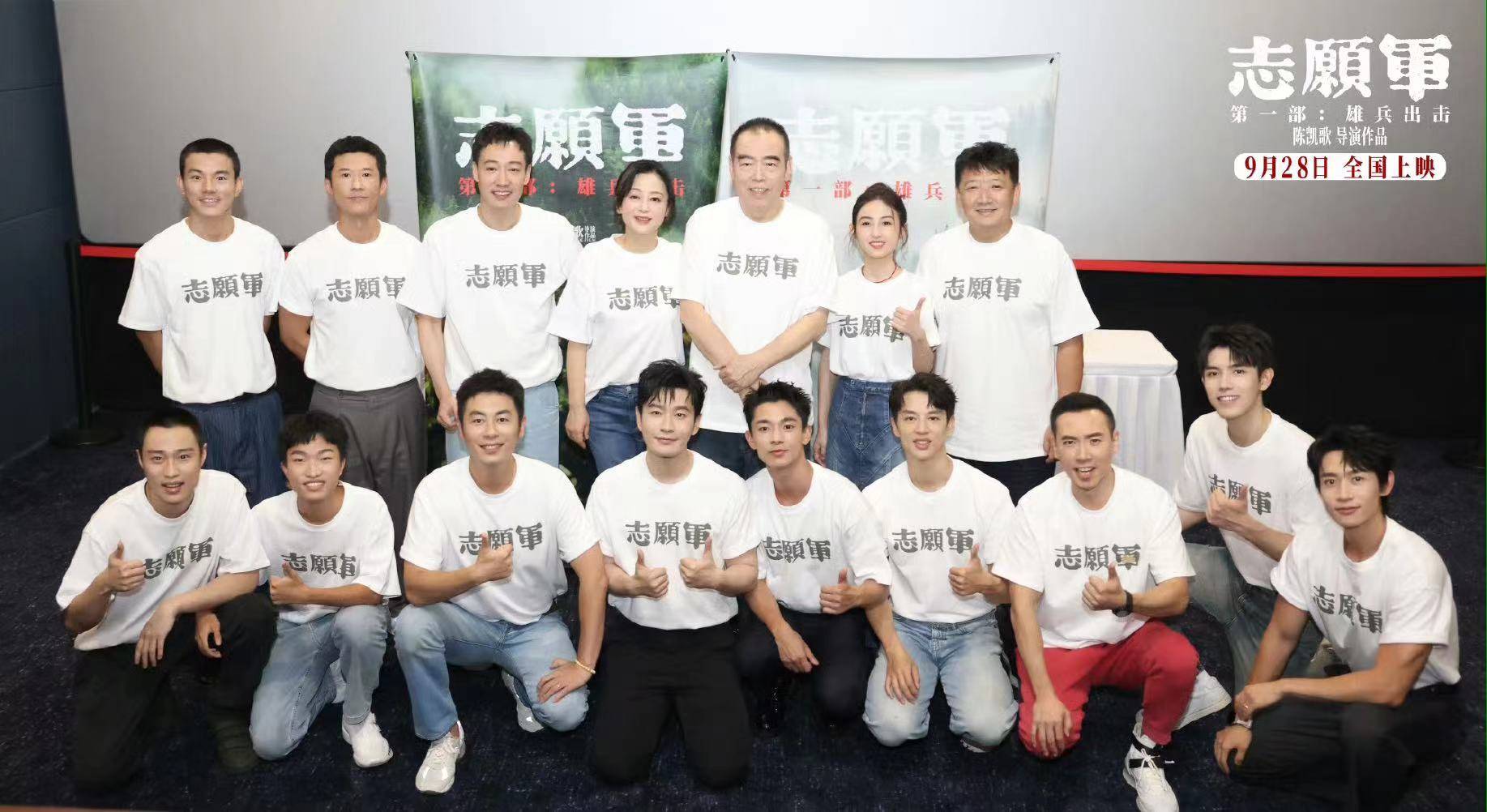 目前导演陈凯歌带领第一部中出镜的演员宣传电影,有张子枫、黄晓明、朱亚文、魏晨、陈飞宇、辛柏青、王骁、王研辉、张宥浩、尹昉等。该片已经举行过首映礼,形式庄严肃穆,更加的隆重。上百位演员演出《志愿军》三部曲,第一部的票房也是很重要,希望能够有更多人观看,学习先烈们坚强的意志,还有那种浓烈的爱国主义精神。