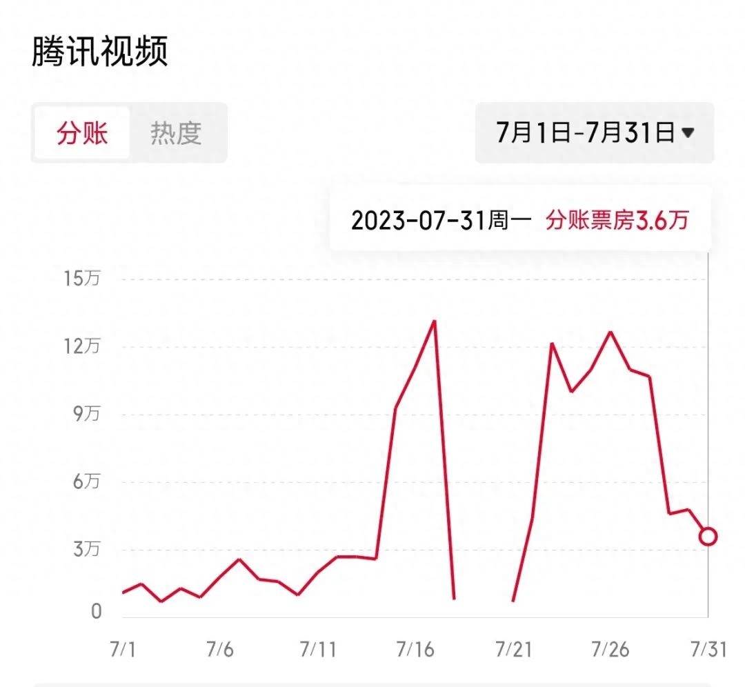上映初期,由于剧本及演员适配度问题,与观众铺天盖地的嘲讽一并袭来的是惨淡的日票房。上映前三日,影片分账票房仅为3.2万、3.6万和2.4万。步入6月后,因陷入口碑争议,其分账日票房更是始终在1万以下。当时,不乏从业者预测,认为其最终分账无法超过50万,或将面临巨额亏损。