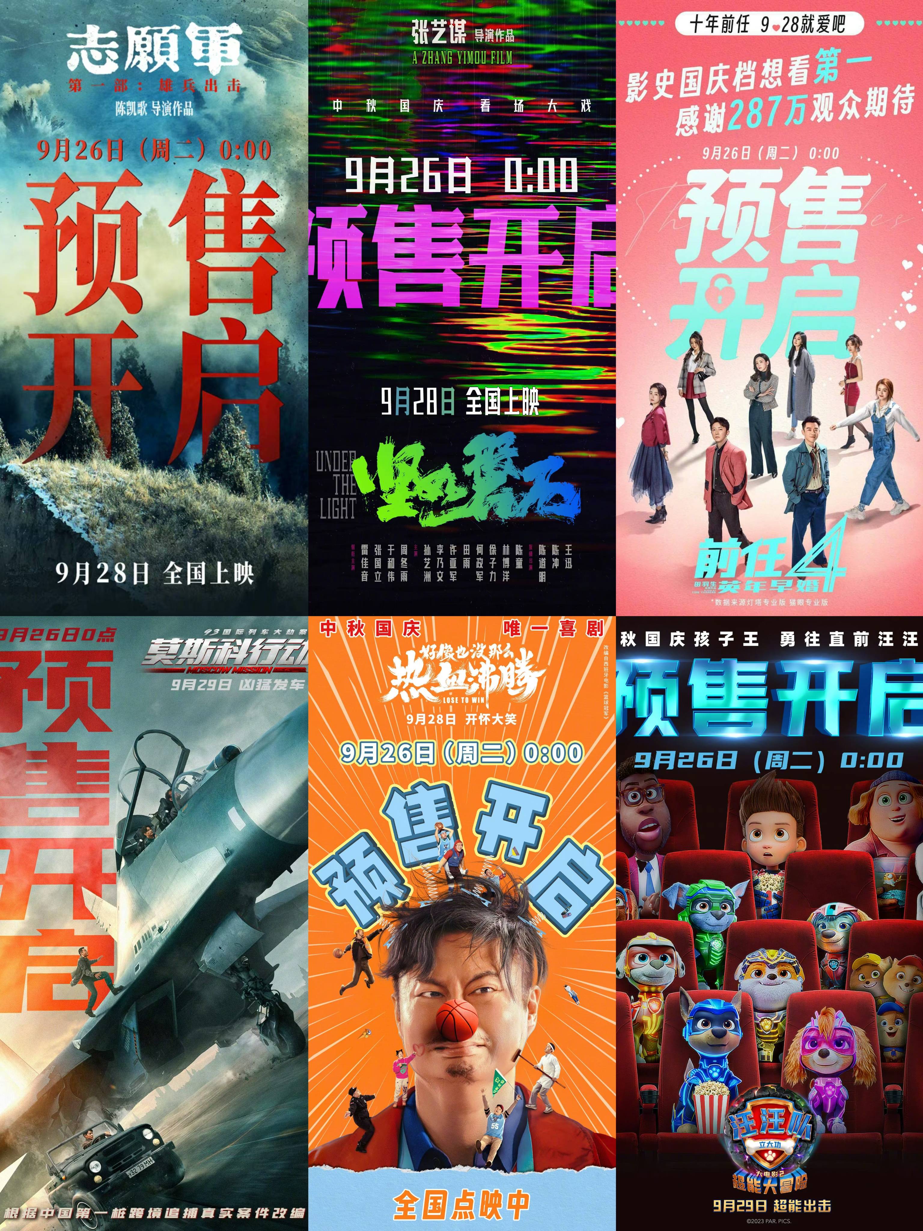 搜狐娱乐讯 9月26日零点,《志愿军:雄兵出击》《坚如磐石》《前任4:英年早婚》《93国际列车大劫案:莫斯科行动》《好像也没那么热血沸腾》《汪汪队立大功大电影2:超能大冒险》等国庆档影片集体开启预售,大家最想看哪部?