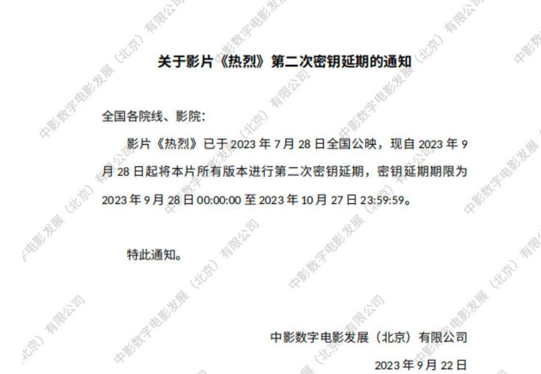 原标题:《热烈》密钥二次延期 将延长上映至10月27日!
