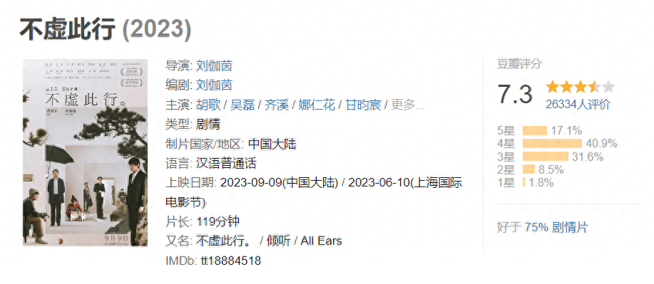 总而言之,《不虚此行》等片的最大失误,就是没能拢住最广大观众的心,使得影片成了小圈子里的狂欢和自嗨。