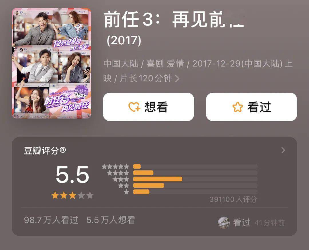 因此,“前任”系列的前几部作品都收获了不俗的票房成绩和口碑,也让“前任”系列一跃成为了国产爱情电影的“经典品牌”。