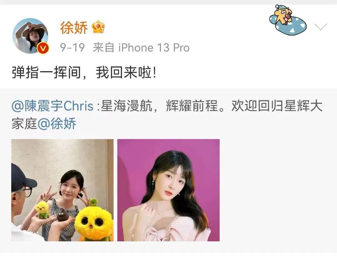 近日,“星女郎”徐娇宣布了一件大事,她发文称自己回归了周星驰的公司,与周星驰继续合作。